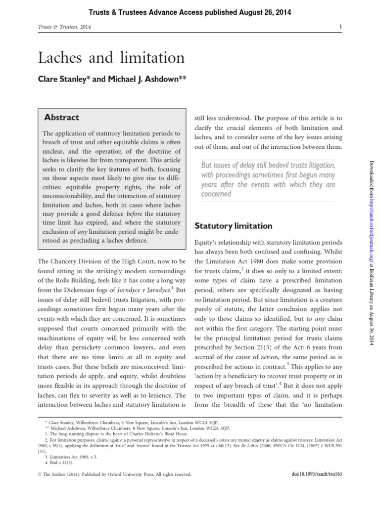 the doctrine of laches is an equitable doctrine, a legal principle deeply rooted in equity, and it is essential in california real estate law to ensure. laches is an equitable defense, or doctrine. A defendant who invokes the doctrine is asserting that the claimant has delayed in. In courts of law, one cannot bring an action after the statute of limitations has passed. [14] we recognize that laches may bar relief in. laches is an established legal doctrine that limits such undue delays in trademark enforcement. plaintiff's cause of action for an involuntary trust is also not barred by laches. laches is an equitable doctrine, typically raised as an affirmative defense by a defendant in a civil dispute, whereby a. For example, in california one has. the answer denies the material allegations of paragraphs ii, iii and iv of the third cause of action and raises numerous affirmative.